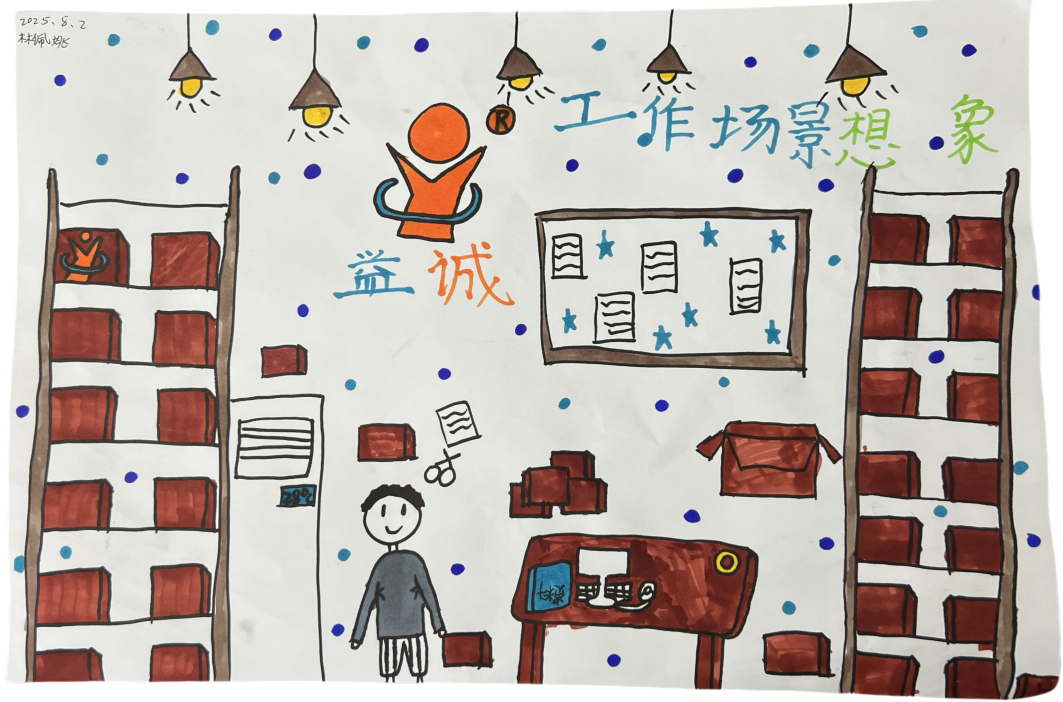 孩子們結合自己的奇思妙想,對益誠LOGO進行了大膽的創(chuàng)意設計,將益誠LOGO設計成了充滿未來感的科技圖案,原本簡潔的標志在孩子們的筆下變得生動有趣,仿佛被賦予了新的生命。