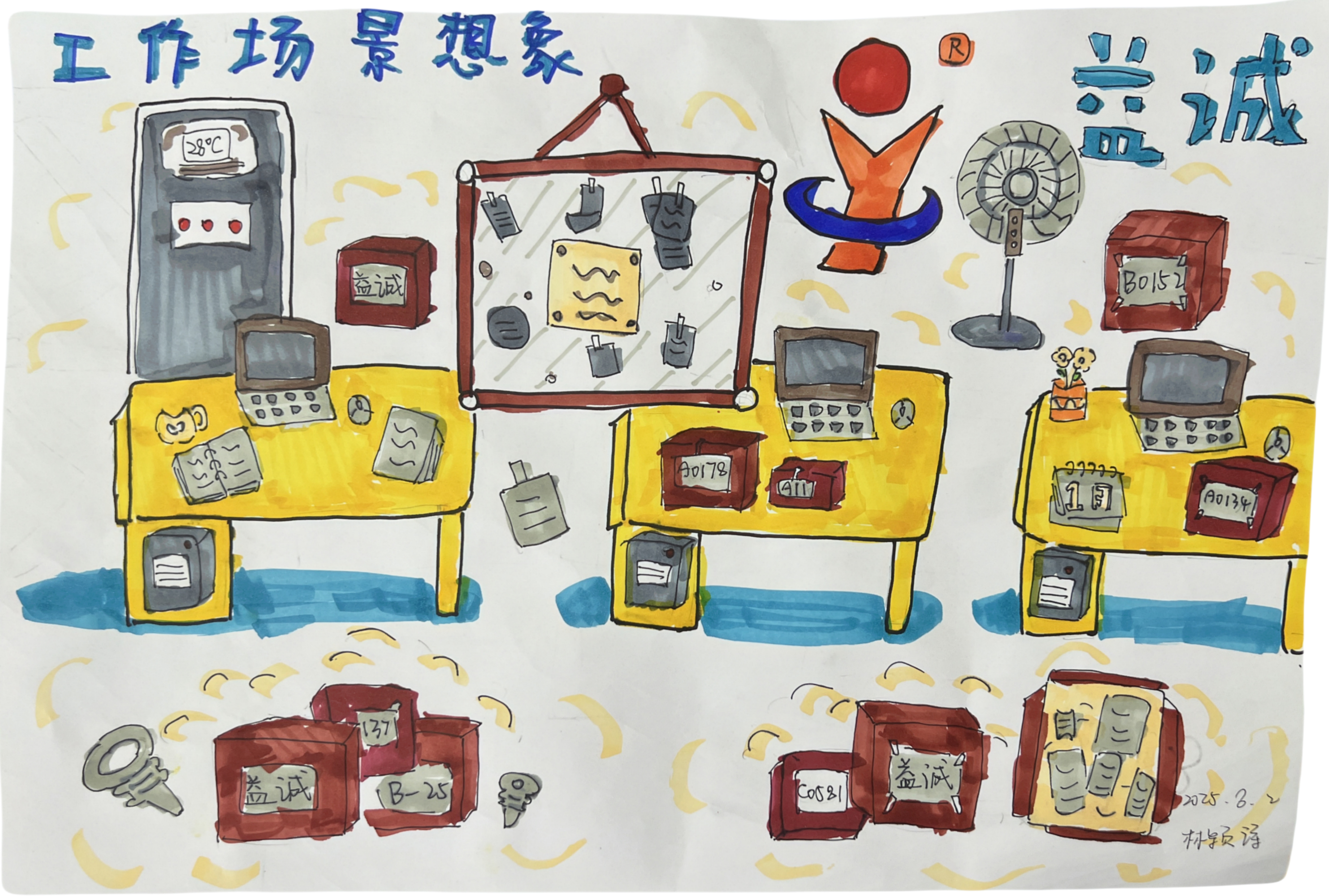 孩子們用稚嫩的筆觸勾勒出父母在崗位上認真工作的畫面。有的畫了父母在電腦前專注地設計圖紙,認真工作;有的畫了父母在車間里仔細檢查產(chǎn)品,臉上洋溢著自信的笑容。這些畫作不僅展現(xiàn)了孩子們對父母工作的理解,更讓我們看到了他們眼中父母辛勤付出的模樣。